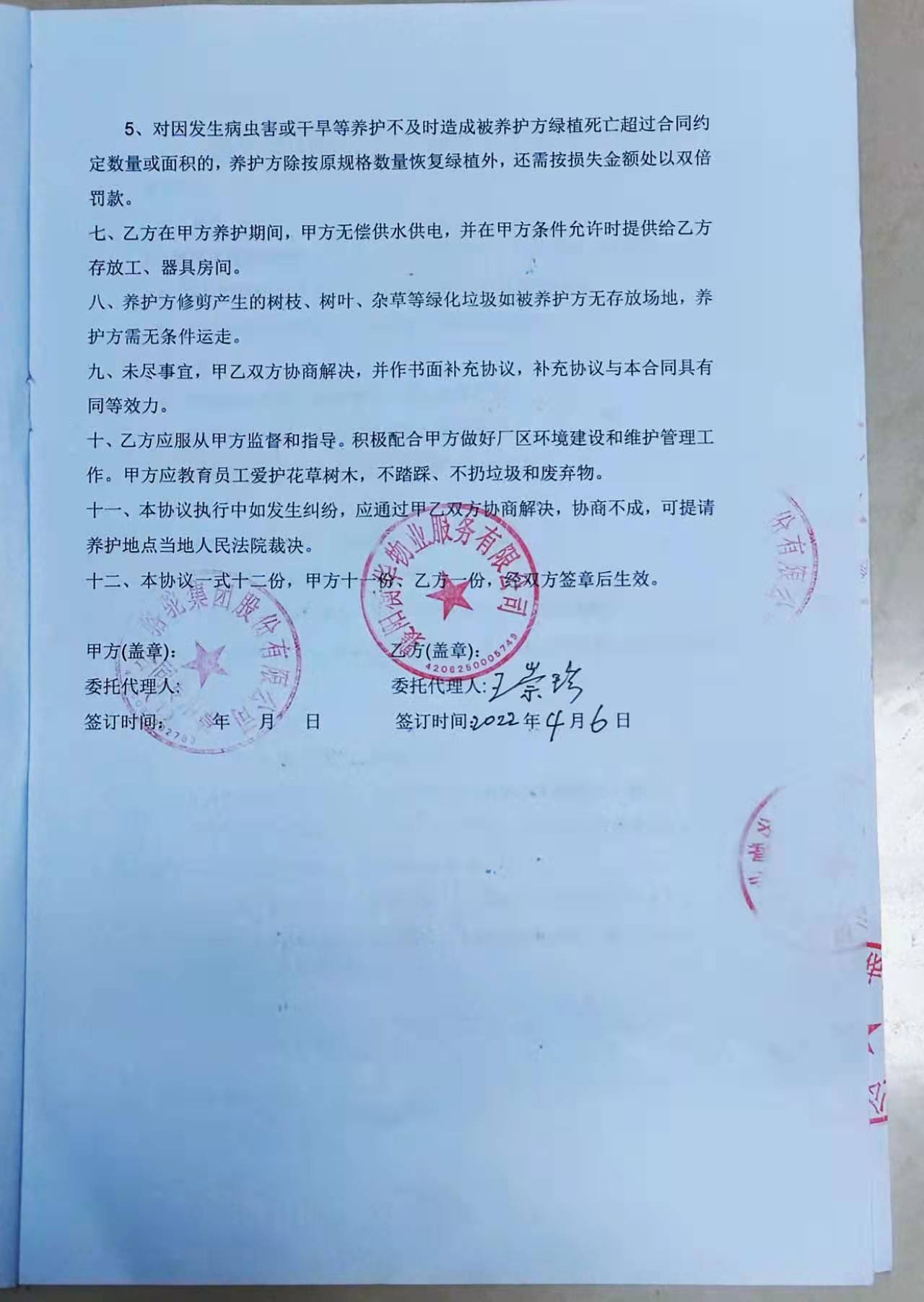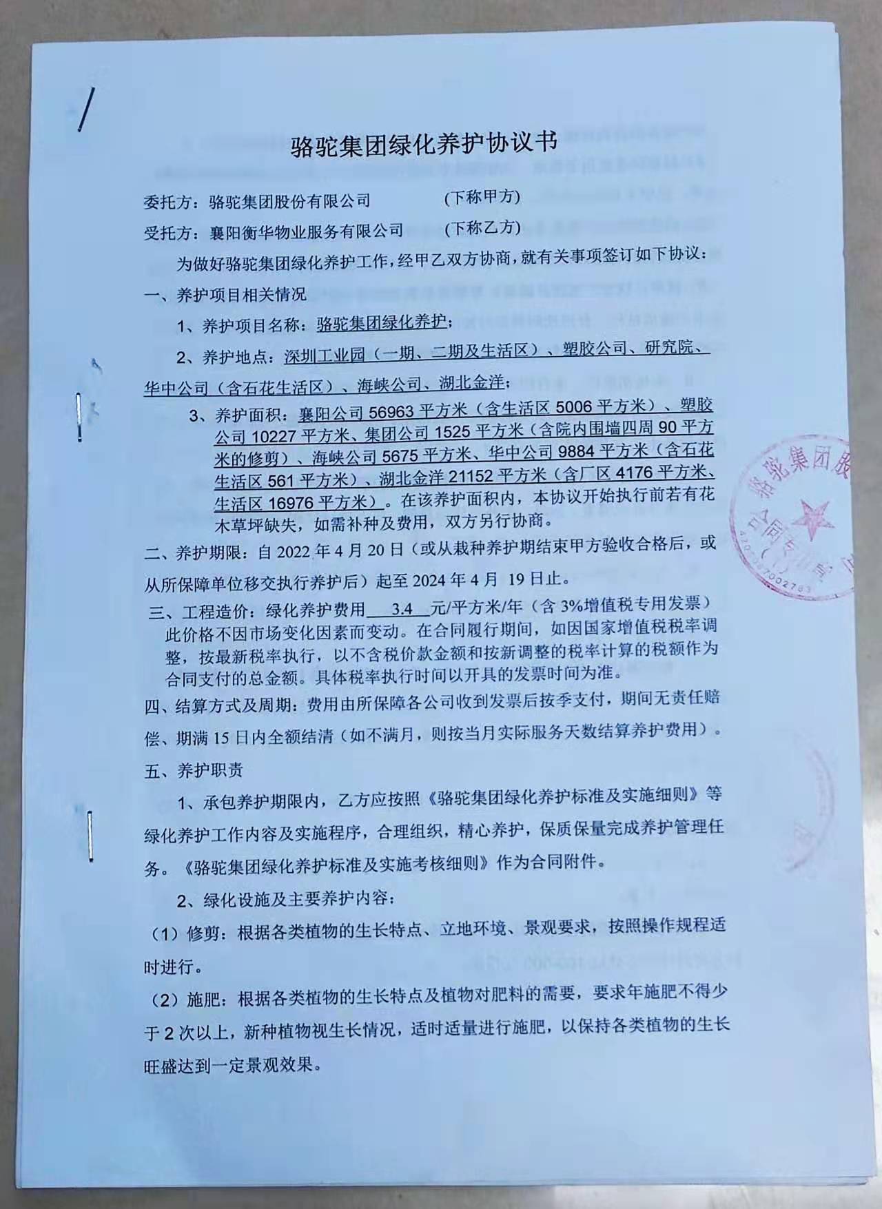 湖北骆驼集团绿化养护协议书