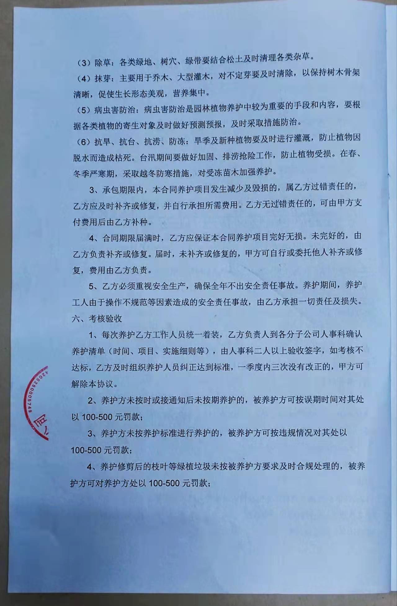 > 湖北骆驼集团绿化养护协议书附件