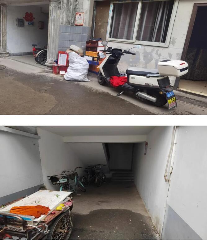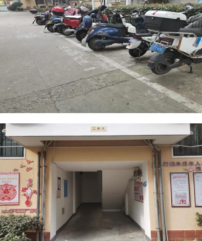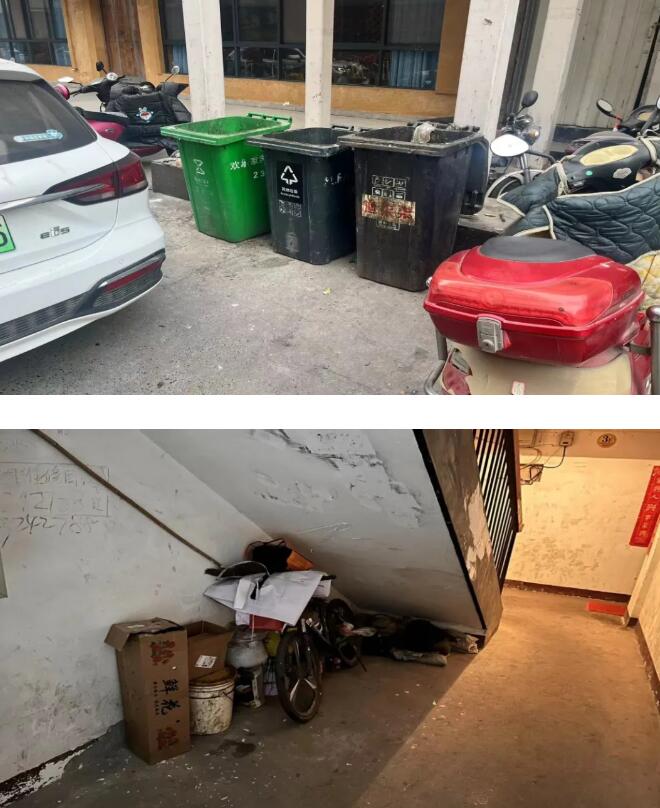 上榜理由:非机动车无序停放,垃圾桶脏污,楼道堆放杂物。