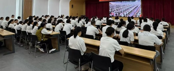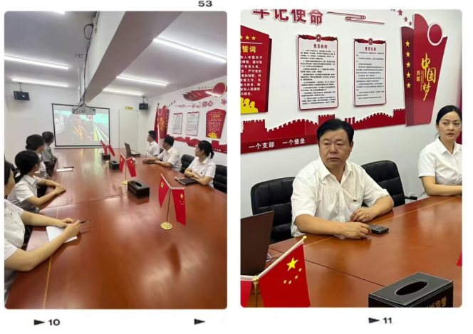 随着阅兵直播开启,大家迅速沉浸在庄严的氛围中,从全体起立升国旗、奏国歌到整齐划一的受阅方阵,彰显国家实力的装备展示,每一个画面都让在场人员深切感受到抗战精神的传承与新时代中国的力量。所有人专注注视屏幕,不时为震撼的场景动容,那份对历史的敬畏、对祖国的热爱,在无声中凝聚成强大的情感共鸣。