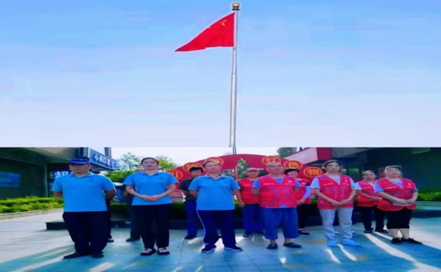 清晨,阳光洒满小区正门广场,绿都物业公司党支部海润名都项目全体员工整齐列队,举行庄严的升国旗仪式。崭新鲜红的五星红旗高高飘扬,全体人员庄严肃立,向国旗行注目礼,心中满怀着对先烈的缅怀和对祖国的热爱。