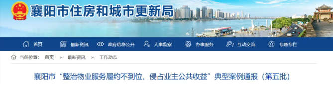 处理结果:该行为违反了《湖北省物业服务和管理条例》第三十七条相关规定,襄城区住建局责令其限期整改,同时依据《湖北省物业服务企业信用评价管理办法(试行)》给予物业企业信用扣分5分。