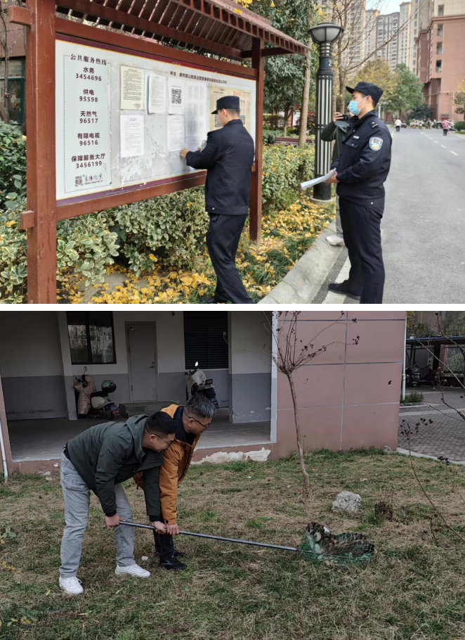 活动现场,“红管家”在小区醒目位置张贴《文明养犬告知书》、发放宣传资料,重点宣讲遛狗牵绳、粪便清理、避让老幼等文明养犬要求;社区工作人员和派出所民警分工协作,结合辖区内养犬纠纷案例,细致解读不文明养犬的危害与法律责任,强化承租家庭“养犬有责、文明养犬”意识,同时对小区流浪犬只妥善管控,消除安全隐患,保障小区居民的出行安全。
