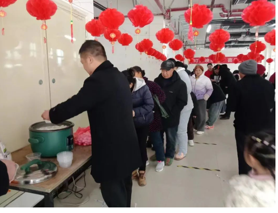 活动现场,服务人员专心煮着汤圆,热气腾腾的汤圆翻滚着甜蜜与温暖。一碗碗汤圆递到每一位路过的业主手中,微笑着送上温馨祝福:“元宵节快乐,津韵物业愿您新的一年幸福安康!”业主们接过汤圆,满心欢喜,简单的问候传递着浓浓的温情。