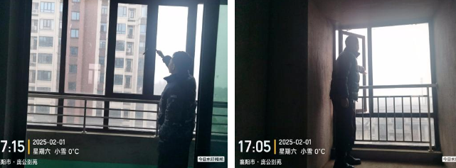 春节期间,襄阳恰逢风雪天气,汉江一品、庞公别苑物业团队迅速响应,对小区空置房、公共区域的窗户进行检查和关闭,防止风雪侵入造成损失。同时,工作人员通过业主群发送寒潮防范预警,提醒业主关注气候变化。