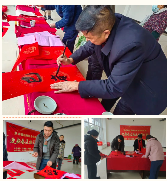 笔墨迎新春,书活动送祝福。写春联、贴春联的寓意是辟邪除灾、迎祥纳福,象征着美好的祝愿和愿景。
