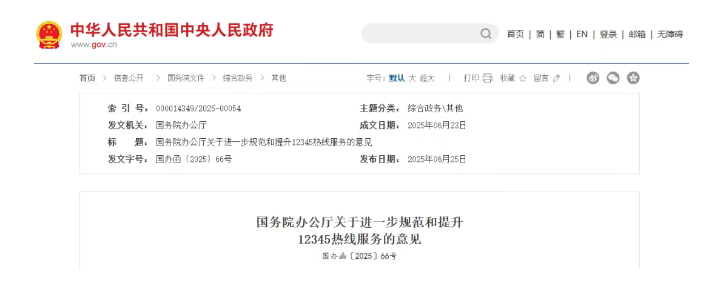 6月25日,国务院办公厅发布关于进一步规范和提升12345热线服务的意见。以下为该意见全文: