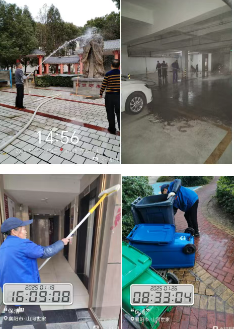 为迎接新年的到来,营造干净、整洁、舒适的生活环境,山河锦秀物业各项目开展环境卫生大清洁行动,陆续对小区主干道、墙面蛛网、楼栋杂物、地下车库、电梯、绿化带、卫生死角等公共区域进行了全面清理,以实际行动提升了小区新年“颜值”。
