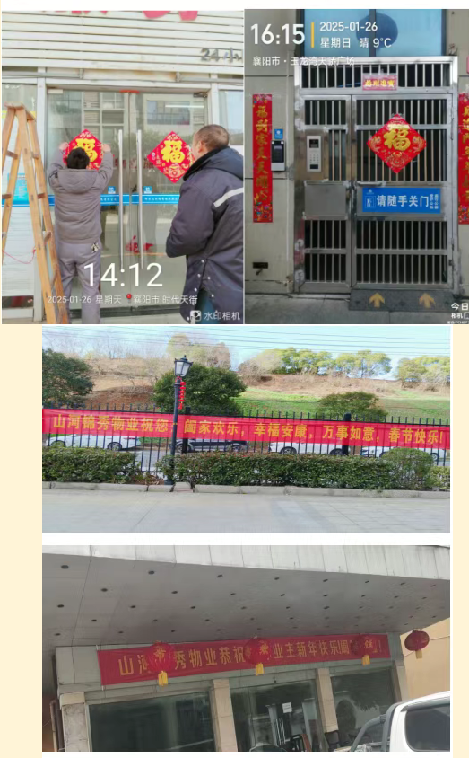 春节是中国最重要的传统节日,承载着人们对团圆、幸福、新年的美好期盼。为了营造欢乐祥和的节日氛围,让小区业主感受到春节的喜庆,山河锦秀物业各项目精心布置春节装饰,为业主和居民带来浓浓的年味。