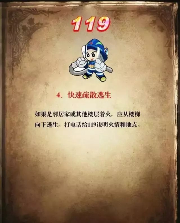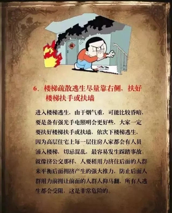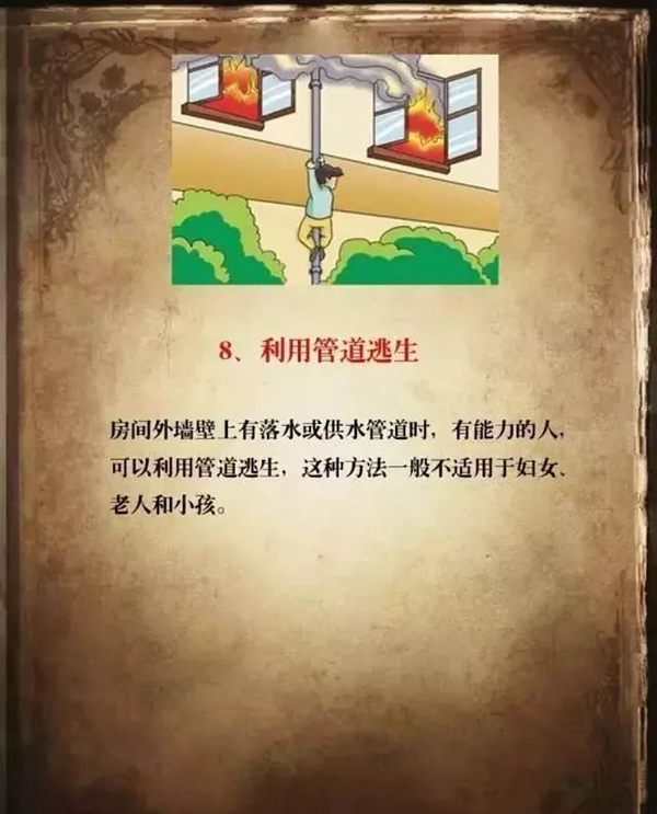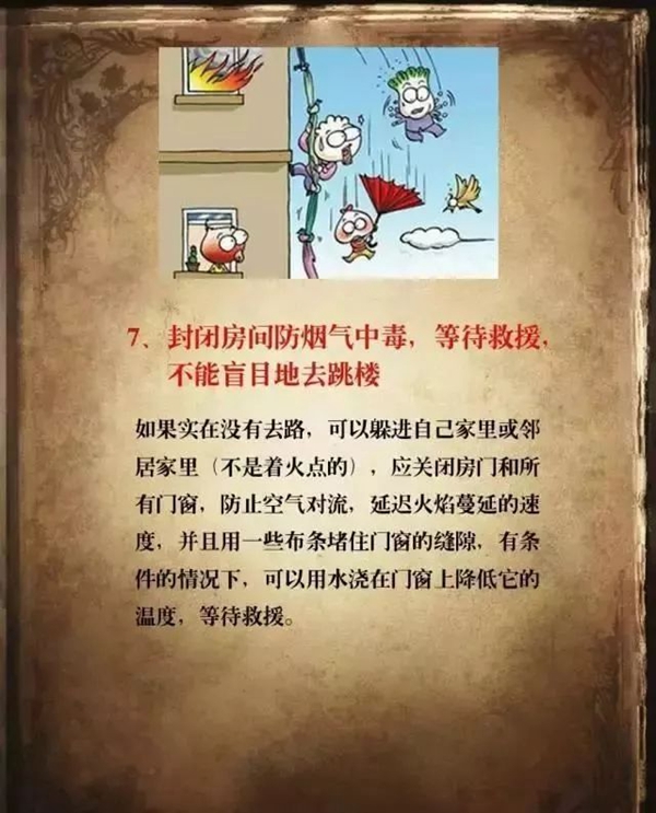 ●住所如果离楼顶较近,可直奔楼顶平台或阳台,发出求救信号并耐心等待救援人员到来。无论遇到何种情况,都不能直接往楼下跳。