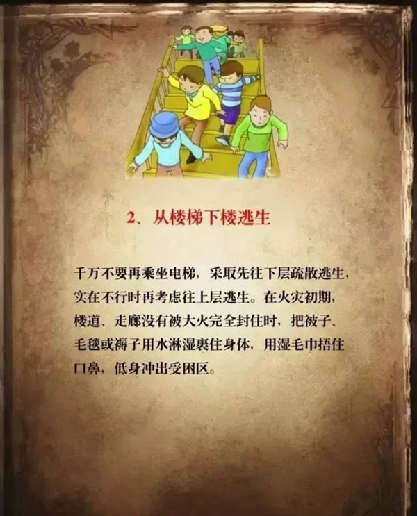 ●利用消防电梯进行疏散逃生,但普通电梯千万不能乘坐。