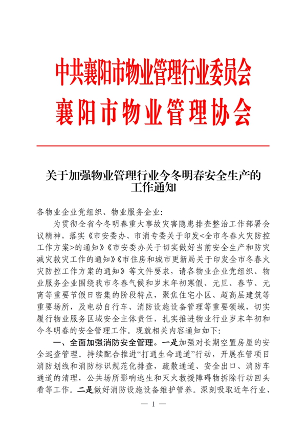 关于加强物业管理行业今冬明春