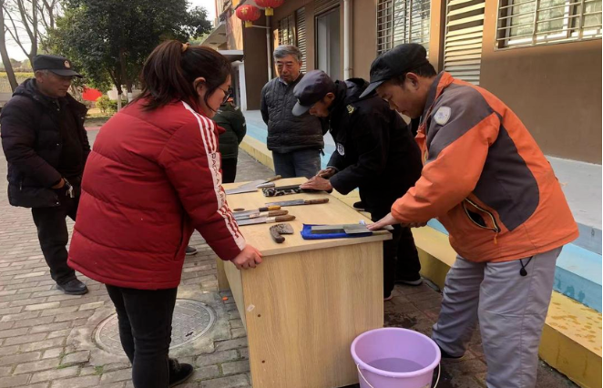 1月17日下午,丽景东苑公租房小区开展了迎新春便民志愿服务活动,旨在为居民送上新春关怀,满足居民在家门口就能享受“磨刀”“清洗地毯”“上门清扫”等便民服务的需求。