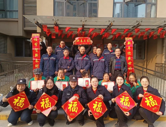 活动中物业人员同社区工作者、小区楼栋长及志愿者们热情地将福字和春联送到每一位业主手中,同时不忘送上温馨的节日问候,“过年了,祝您阖家幸福,新春快乐!”一句句真诚的话语,让业主们心里暖洋洋的。