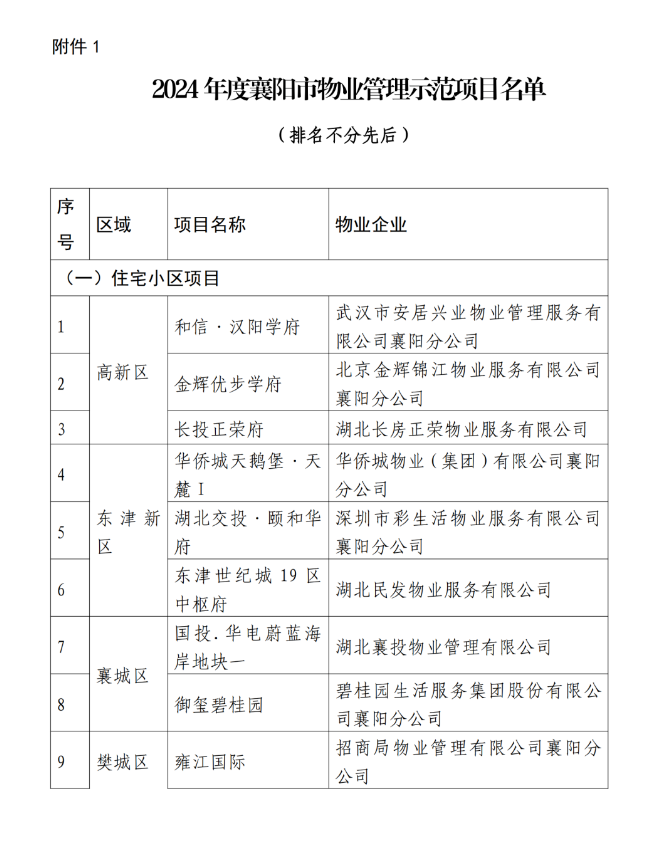 1.2024年度襄阳市物业管理示范项目名单