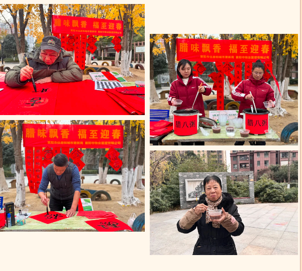 腊八节不仅是一个传统的节日,更是一个传递爱与温暖的契机。接下来,襄阳市物业管理有限公司将继续围绕小年、春节、元宵节等传统节日,开展多样化活动,让居民们感受到浓浓年味。