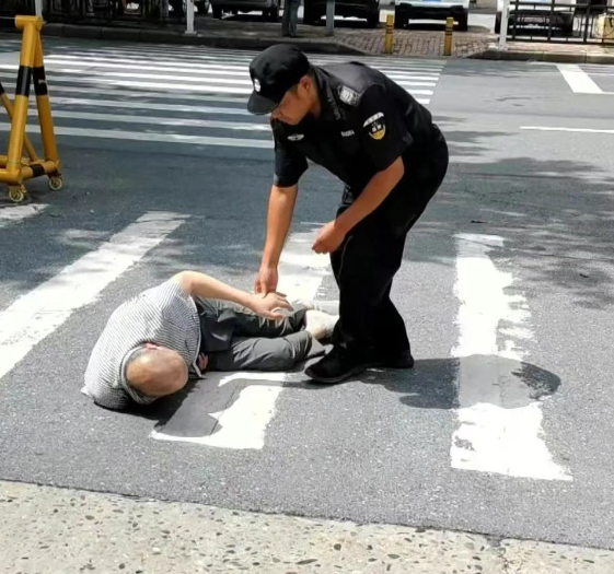 立刻安排御林军保安公司的肖帮军肖队长和吴旭东搀扶起晕倒老人,三人默契展开"救援"