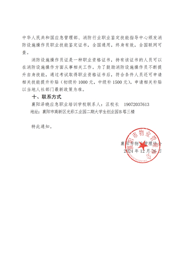 襄阳泽晓应急职业培训学校联系人:汪校长 19072037613