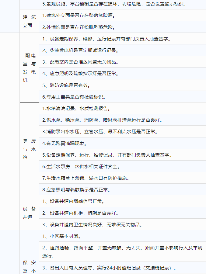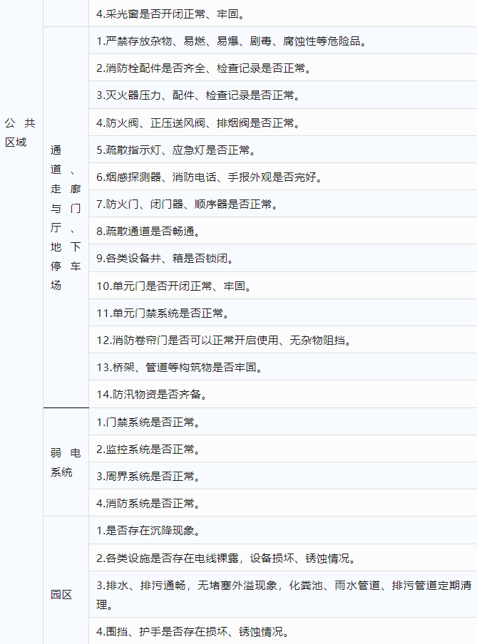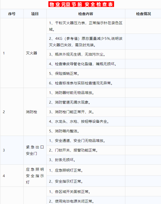 元旦节前物业安全检查表
