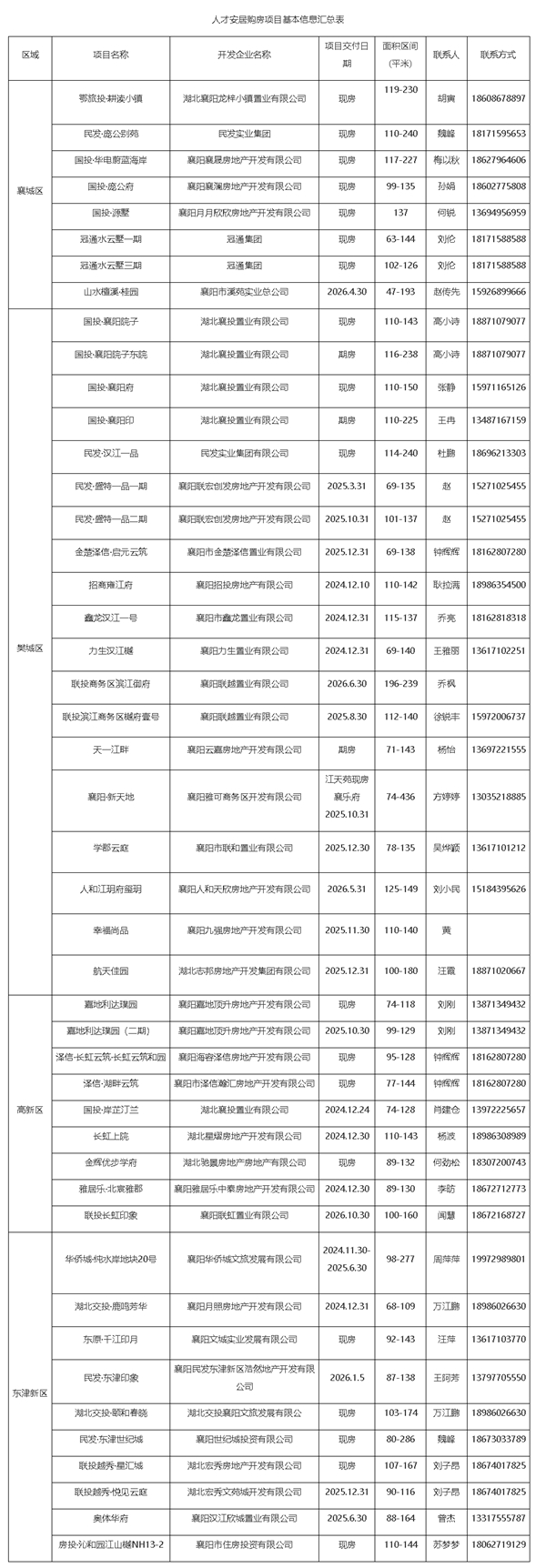 1.申请补贴购房人于《襄阳市人才安居保障办法》实施后在城区购买新建商品住房建议房源。