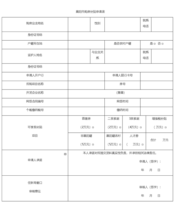符合以下条件的购房人,在襄阳市中心城区(不含襄州区)购买新建商品住房的,按下列范围给予购房补贴。