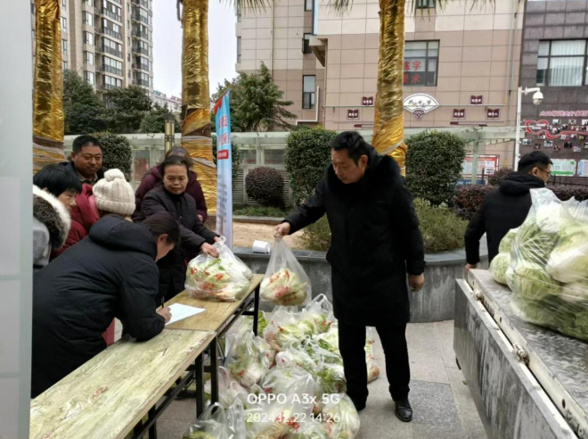 在这个寒风渐起、岁末将至的美好时节,冬至悄然而至。12月22日,在这个充满温情的日子里,彩生活物业襄阳事业部荣华·卧龙公馆物业服务中心为了回馈广大业主对物业的支持与厚爱,联合东升社区及粱咀蔬菜基地开展爱心助农“‘蔬’送温暖 ‘百财’到家”活动。工作人员提前精心挑选了新鲜脆甜的白萝卜与营养丰富的大白菜,也希望在冬日里为业主增添一抹温暖与甜蜜!