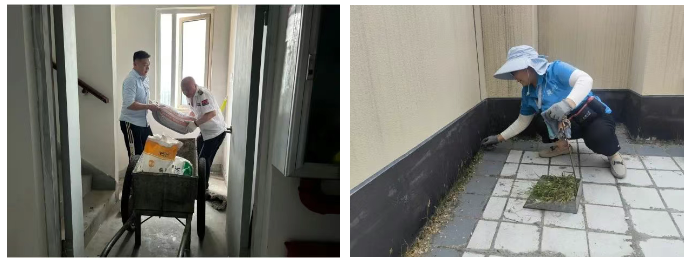 开展环境卫生集中整治行动和常态化清洁工作,定期组织工作人员对楼道、垃圾桶进行擦拭,及时对绿化、路面的纸屑、枯叶、烟蒂清理打扫,对公共设备设施统一清洗,全面消除积存灰尘、污渍,切实做到全覆盖、无死角。同时对小区楼道乱堆放、乱贴小广告等现象进行全面排查、集中处理,夯实基础卫生管理,不断提高服务质量。
