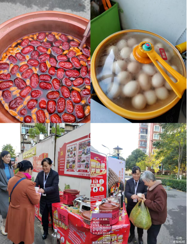 茶香生暖意,凛冬不知寒。一杯杯姜枣茶,一碗碗银耳汤,一枚枚鸡蛋,虽看似微不足道,却蕴含着物业对业主深深的关爱与牵挂。我们始终致力于为业主打造一个温馨、舒适的居住环境,在服务细节上用心用情让爱升温,无论是炎炎夏日的防暑降温饮品,还是寒冬腊月的暖心姜枣茶,我们会持之以恒开展多元化社群文化活动,坚持不懈地通过这些小小的举动,用无数小美好汇聚业主的大幸福,让业主们感受到家的温暖与安心,让我们的家园成为业主心中最温暖的港湾!