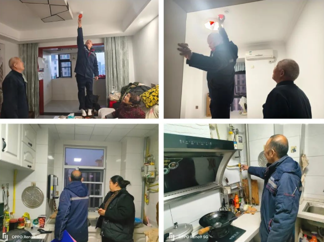 宣传过程中,物业工程人员重点强调了家庭电器火灾的预防。用火用电勿大意,人走火灭电关闭。电热毯不可折叠使用,不宜长时间通电;做饭、烘烤衣物时切莫离开,定期检查电气线路,及时更换老化电线;及时清理厨房、楼道、阳台的可燃物。同时工程人员还帮忙排查了家中安全隐患。“王叔叔,您家的感烟探测器的防尘罩未取,我帮您取下,这个小烟感别看它小,但是作用非常大,一旦户内有烟,我们监控室会及时收到反馈信息,工作人员会及时上楼查看,从而避免火灾的发生。”老人经工作人员详细解释,表示明白了。