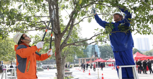 选手以剪、锯为“笔”,树为“考卷”,让服务“晒”在阳光下。