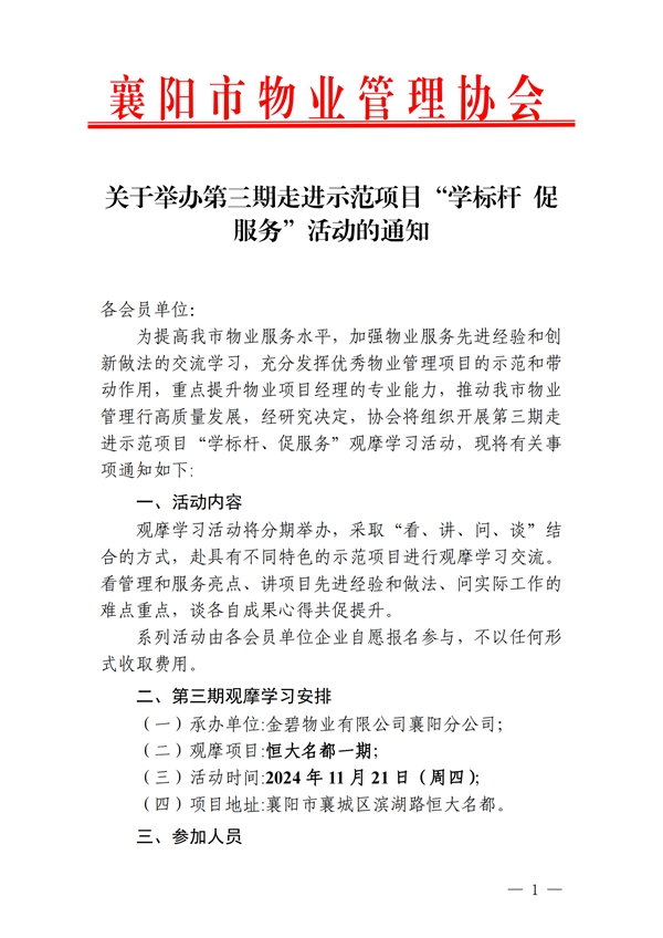 关于举办第三期走进示范项目“学标杆 促服务”活动的通知