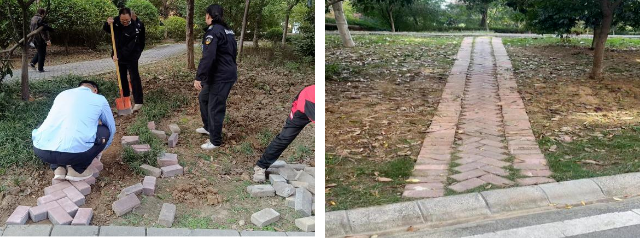 泥泞小路换新,改善居民出行。祥龙泰然居小区在日常巡检时发现,绿化带中有一些人为踩踏形成的泥泞小路,不仅影响了小区绿化完整度,还存在安全隐患,针对此情况,工作人员第一时间开展改造工作,用红砖、鹅卵石对路面进行铺设,历时两天,更新改造四条通道,让一条条泥泞小路变成了宽敞整洁的人行通道,既方便居民就近通行,又保护了绿化植物不受踩踏,从细微处着手改善小区人居环境,用实际行动将“问题路”变成了“暖心路”。