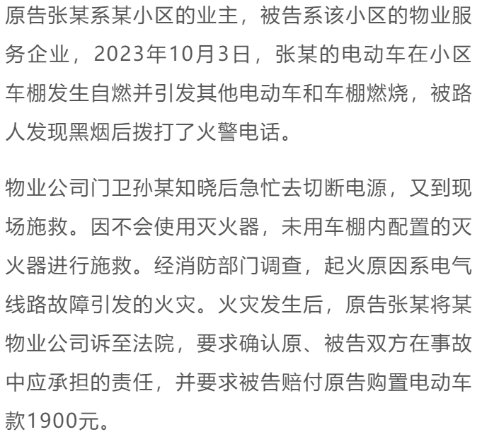 【案例分析】电动车在小区车棚起火,损失谁来承担?