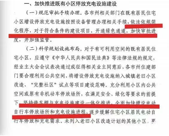 通知还要求各地财政、住建部门要牵头协调,积极争取属地政府将增设电动自行车停放充电设施纳入政府民生事项,多渠道筹集资金统筹推进停放充电场所设施及消防配套设施等建设,鼓励社会企业参与电动自行车停放充电设施的建设与运营,有条件的地方可制定政策,对按照标准建设并通过验收的停放充电设施建设给予适当支持。