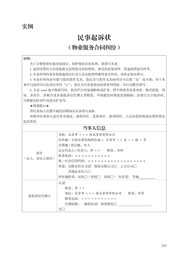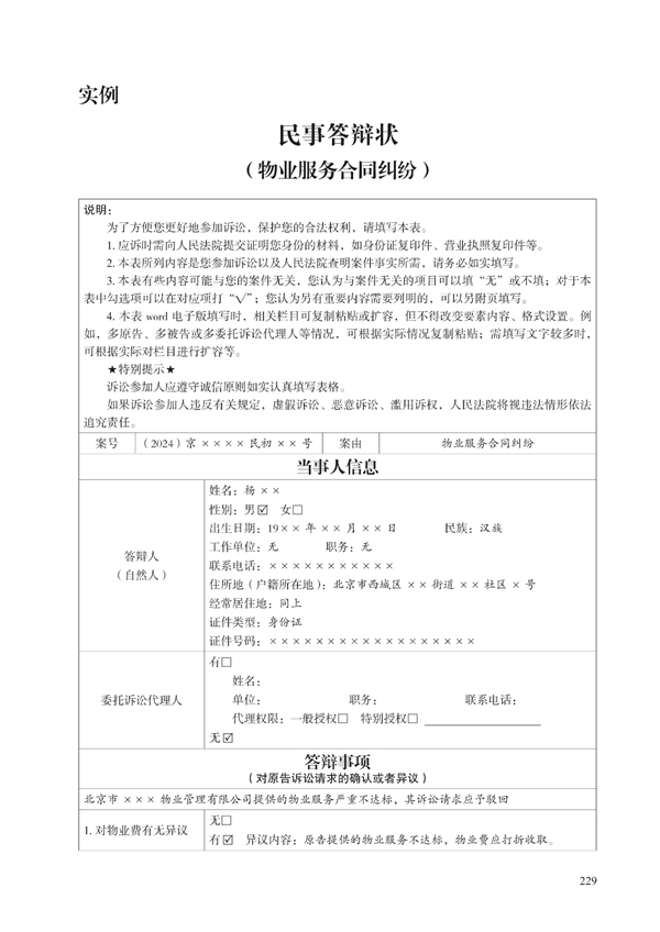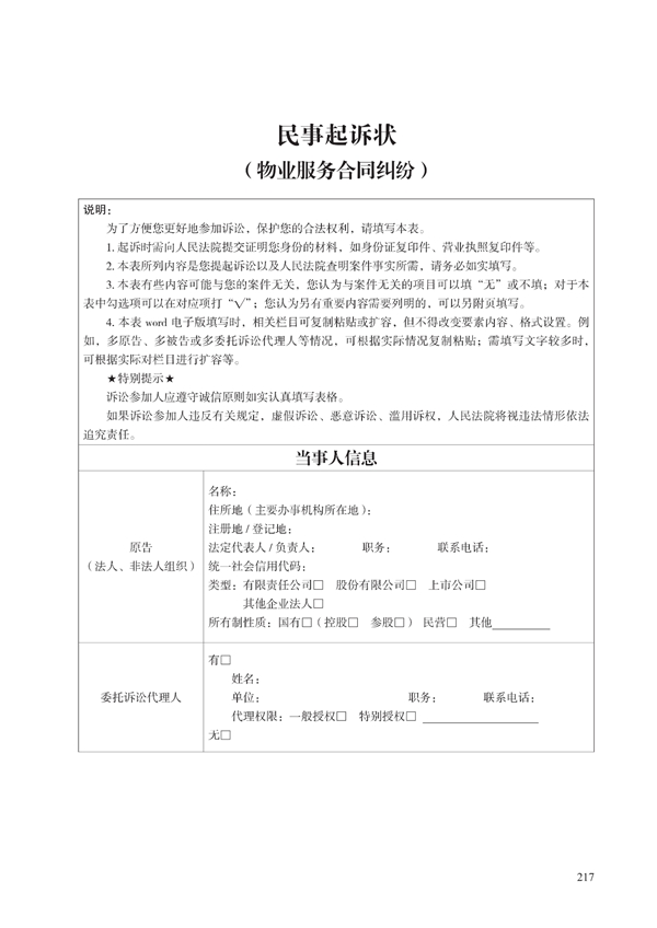 近日,最高人民法院、司法部、中华全国律师协会联合印发《部分案件起诉状答辩状示范文本》。本次发布的示范文本囊括刑事(自诉)、民事、商事、知识产权、海事、行政、环境资源、国家赔偿、执行等9个领域、合计67类常见多发纠纷。其中包括物业服务合同纠纷民事起诉状和物业服务合同纠纷民事答辩状。