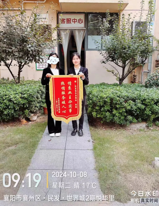 10月8日一早,民发悦华里小区物业服务中心也收到了一面锦旗。