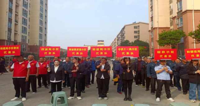 小区居民自发组织拉拉队呐喊助威,加油!加油!