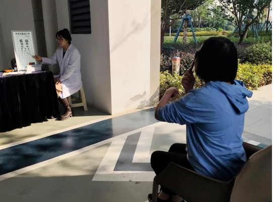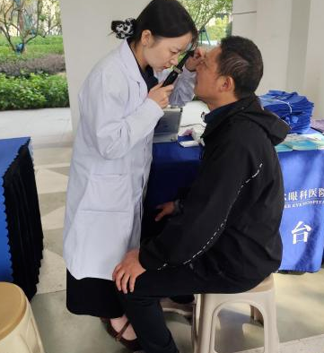 眼科医生利用先进的医疗设备,仔细地为业主进行眼视力测试与裂隙灯检查,每一项检查都严谨有序,确保结果的准确无误。