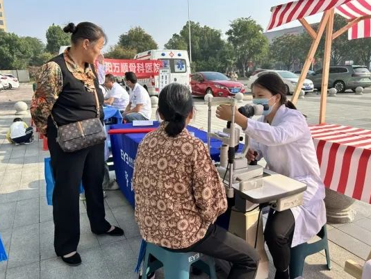 眼科医院的医生们则利用专业设备为老人们进行了视力检测,并就如何保护眼睛、预防眼部疾病给出了实用的建议。