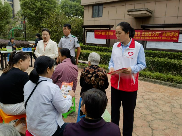 衡庄·秀雅园小区联合襄阳市公交集团27路线开展“九九重阳节志愿暖夕阳”活动。“红管家”为老年人们普及讲解“安全用电”“安全用燃”“防电信诈骗”等相关知识。襄阳公交27路线的志愿者还给在场的老年人普及宣传“老年人乘公交”安全知识、常识、注意事项,让在场的老年人都受益匪浅。