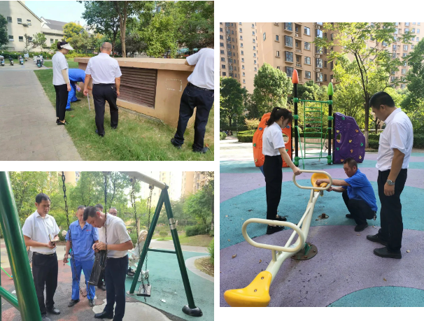 检查公共照明设施、游乐设施、园区水景设施情况