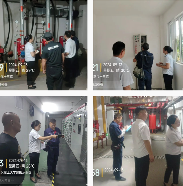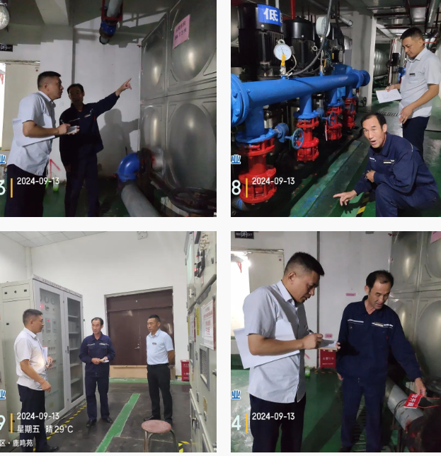 节前,各项目对小区供电系统、供水系统、安防系统、电梯等设备设施进行安全检查,确保设备设施节日期间安全、稳定、正常运行。