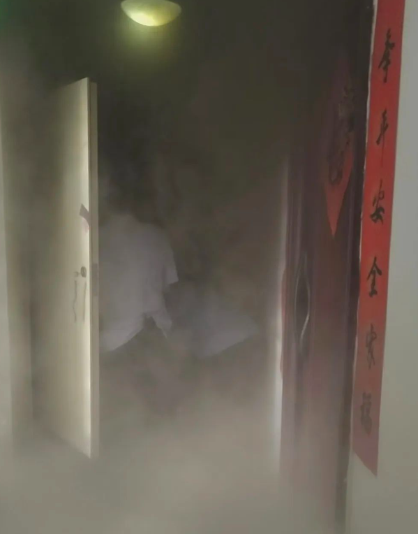 接到消息后,文雪莲迅速赶到了刘女士家门口。循着焦糊的气味,文雪莲打开了电井房门,一股浓烟扑面而来。