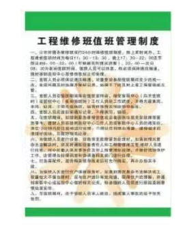 出入机房管理制度、电梯使用管理制度、电梯应急救援制度、消防泵房管理制度、消防控制柜操作规程、配电房管理制度、交接班制度、倒闸操作制度配电设备巡检制度、值班管理制度、空调机房管理制度、制冷机操作规程。