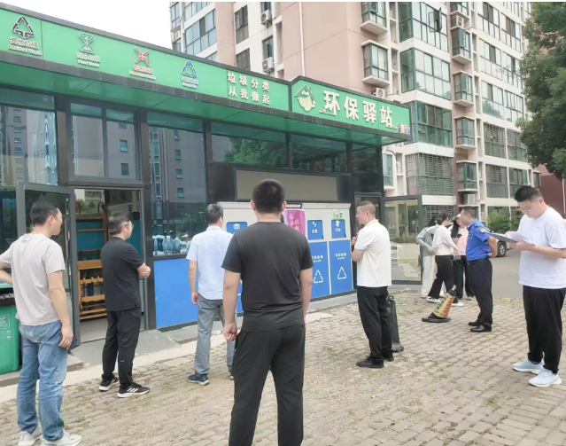 检查中针对小区桶站设施、环保驿站巡查记录、垃圾桶环境卫生等工作落实情况,垃圾桶分类是否明确、分类标识及公示牌是否规范、垃圾投放是否准确、投放点位是否干净整洁等进行现场督导检查,稳步有序推进小区垃圾分类工作。
