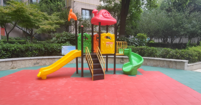 儿童滑滑梯是孩子们尽情释放活力的乐园,而地垫则是守护他们安全的重要屏障。现有的地垫经过一段时间的使用,可能出现了略硬磨损问题,无法再为孩子们提供足够的缓冲和保护。红色物业敏锐地察觉到了这一需求,果断决定对儿童滑滑梯地垫进行升级。