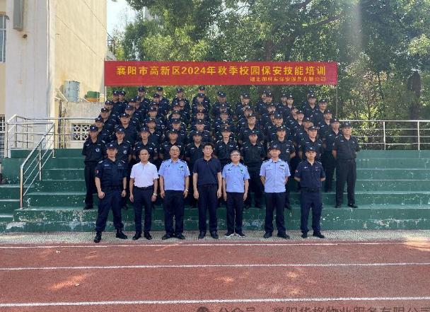 为深入推进平安校园建设,切实做好校园安全防范工作,增强校园保安应对与处理突发事件的能力、技巧和方法,保障秋季开学,筑牢校园安全防线,2024年8月24日上午,由高新区社会事务局、高新区公安分局治安大队、湖北御林军保安服务有限公司联合举办高新区2024年秋季校园保安技能培训。来自高新区34所学校的100余名驻校保安队员参加此次培训。