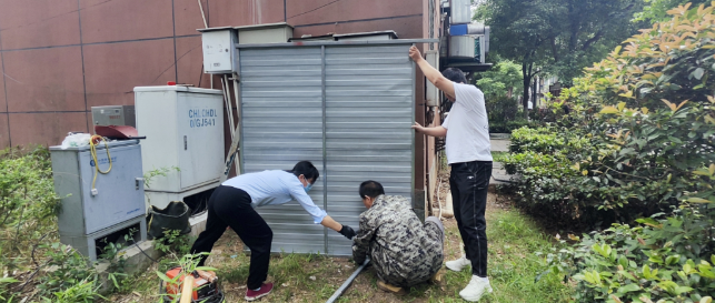 安全用水、用电、用气是小区商户经营最基本的保障,邓城·芳草园项目部定期上门开展安全防护宣讲、实时关注水电供给情况、进行安全隐患排查,为避免恶劣天气下露天配电箱引发跳闸、短路等情况,给电表箱搭建雨棚、安装电扇,确保设备设施正常运行,保障商户安全经营生产。