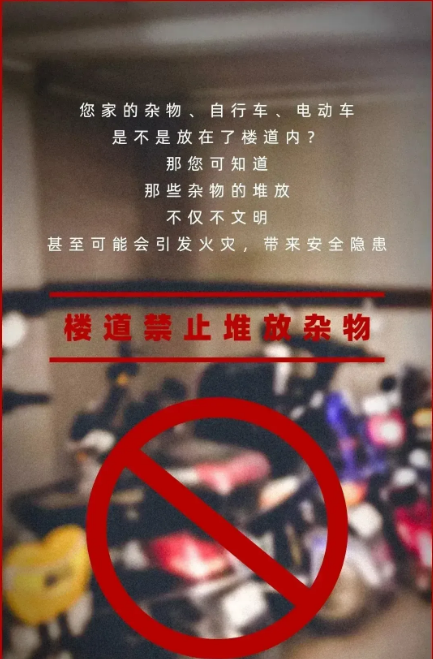 切莫在小区楼道、楼梯间和单元楼道等地方堆放杂物。