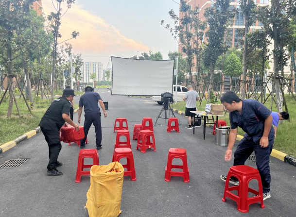 为丰富青年公寓住户的精神文化生活,唱响主旋律,传播正能量,营造和谐、温馨的社区生活氛围,在2024年8月15日这个特殊的日子里,津诚城市服务有限公司青年公寓物业服务中心组织开展了以“重温红色电影,厚植爱国情”为主题的第二届星空电影节活动。